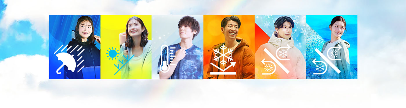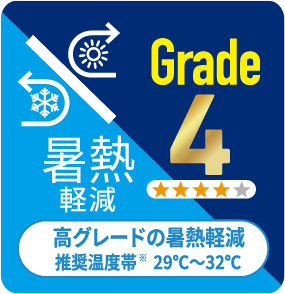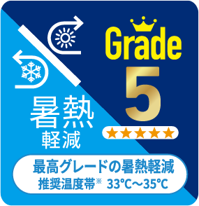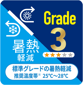 ※適応暑熱対策衣料は、猛暑環境に効果的ですが、それだけで熱中症を予防できるわけではありません。推奨温度帯は衣料の機能性、仕様などを総合的に判断した温度帯です。推奨温度帯で快適に過ごせることを保証するものではありません。